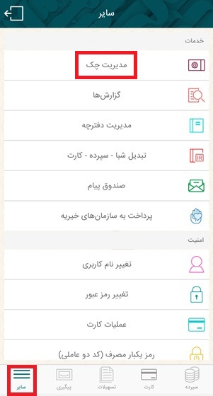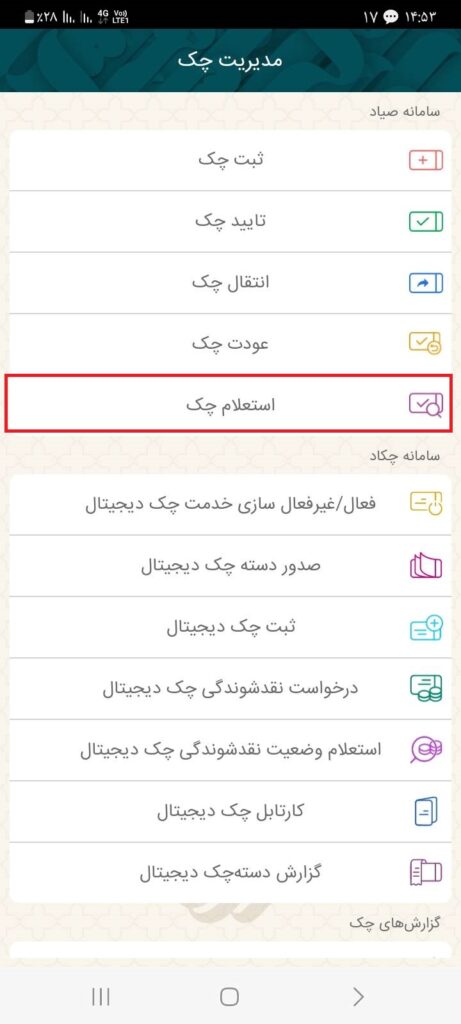 از قسمت مدیریت چک، بر روی استعلام چک، کلیک کنید.