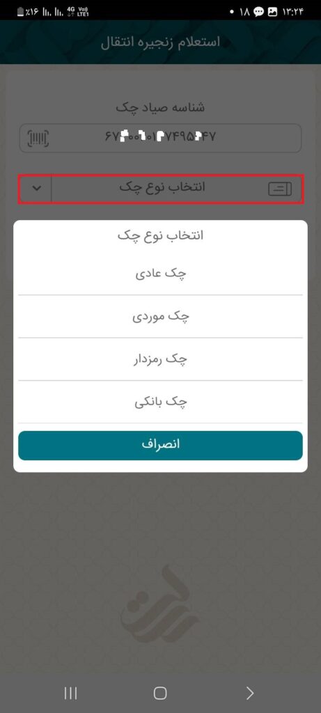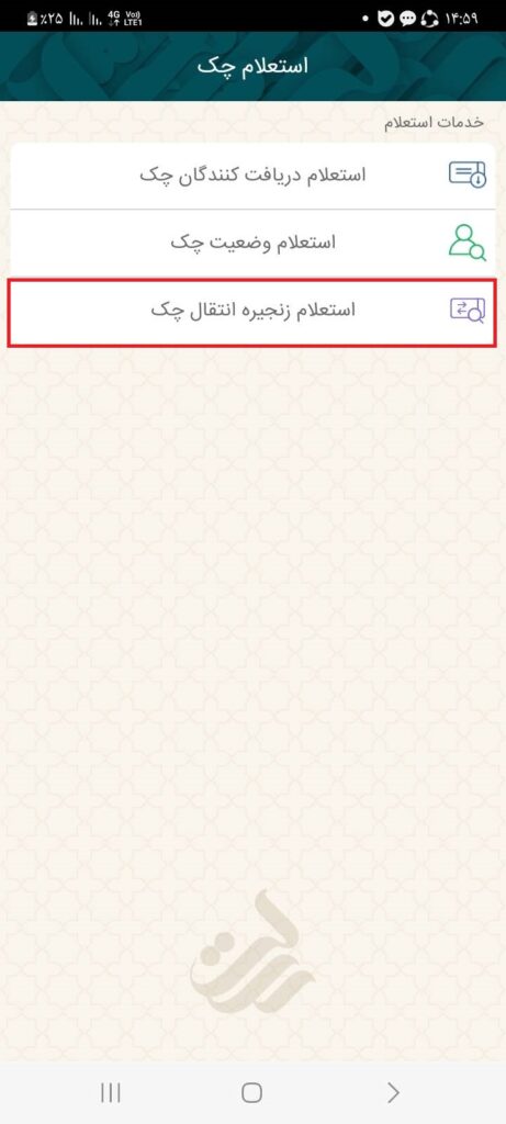 استعلام زنجیره انتقال چک را انتخاب کنید.