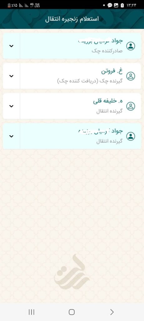 در ادامه، فرایند استعلام زنجیره انتقال چک در همراه بانک را مشاهده مینمایید.