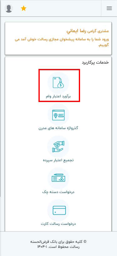 در صفحه اصلی گزینه برآورد اعتبار وام را انتخاب کنید.