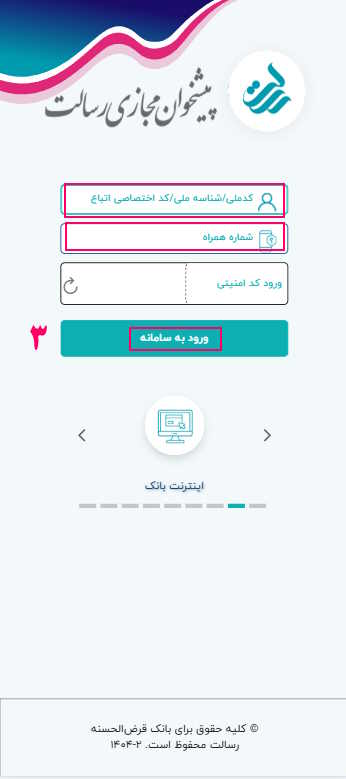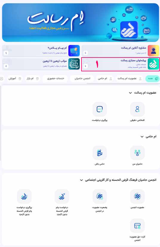 1- از صفحه اصلی ام رسالت گزینه پیشخوان مجازی رسالت را انتخاب کنید.