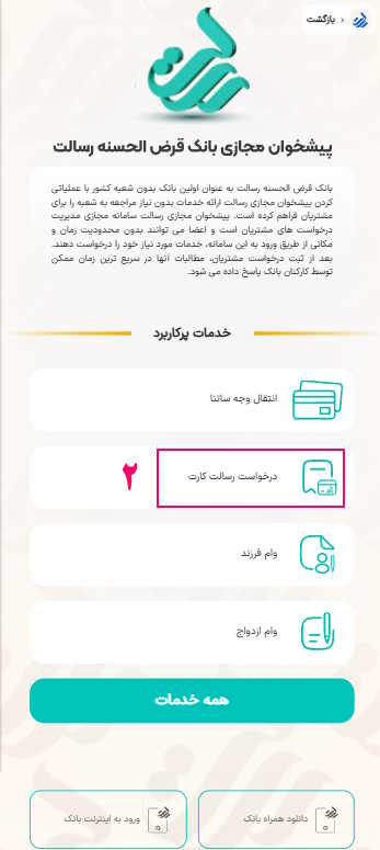 2- گزینه درخواست رسالت کارت را انتخاب کنید.