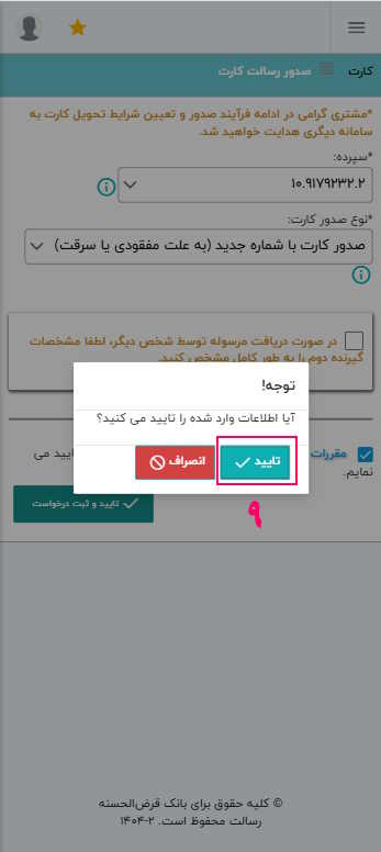9- با انتخاب گزینه تایید، اطلاعات وارد شده را تایید نمایید.