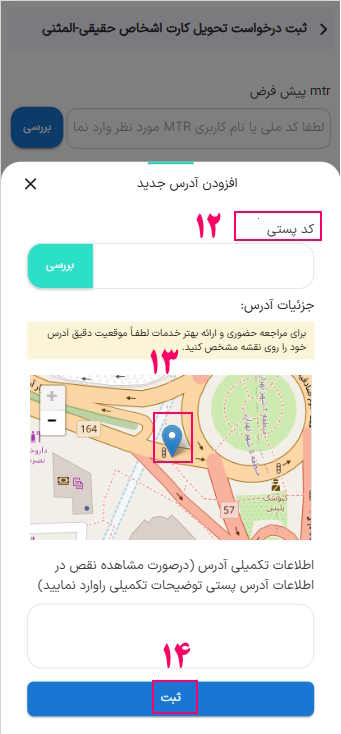 13- لوکیشن دقیق خود را جهت مراجعه متصدی احراز و تطبیق وارد نمایید.
