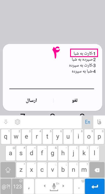 4- با وارد کردن عدد 1 گزینه کارت به شبا را انتخاب کنید.