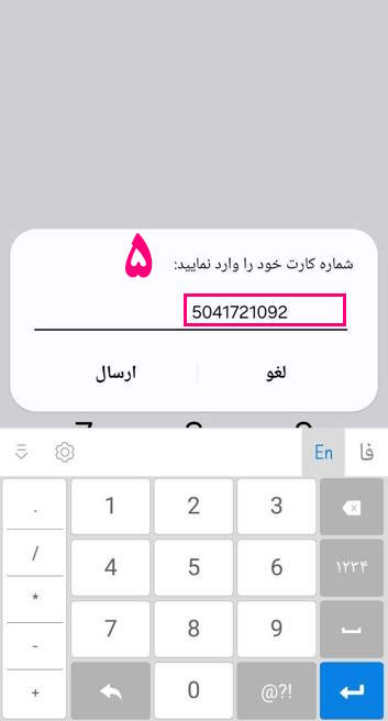 5- شماره کارت بانک قرض الحسنه رسالت را وارد نمایید.