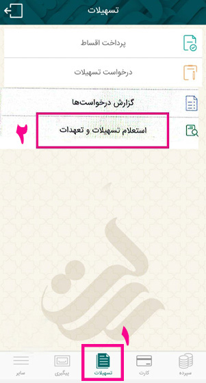 1- ورود به همراه بانک و انتخاب سربرگ تسهیلات