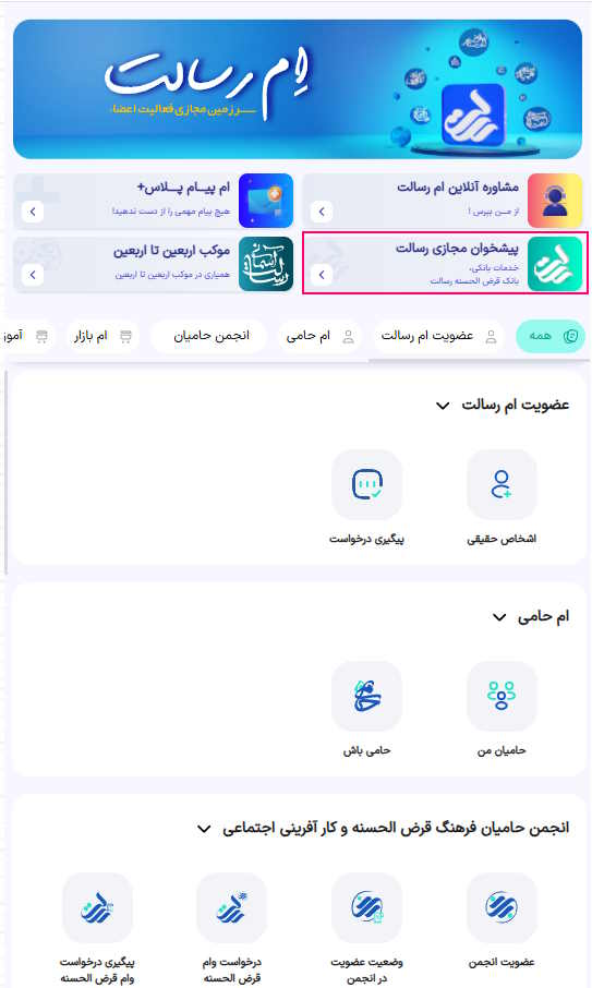 نکته خیلی مهم: قبل از اقدام به ثبت درخواست شما باید عضو سامانه ام رسالت شده باشیدو حساب شما نزد بانک قرض الحسنه رسالت باز شده باشد. لذا در صورتی که تاکنون عضو نشدهاید، از طریق لینک www.mresalat.ir وارد سامانه ام رسالت عضو شوید و فرایند عضویت را تکمیل نمایید. (راهنمای عضویت در ام رسالت)