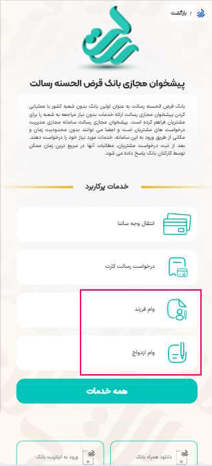 جهت ثبت درخواست وام قرضالحسنه ازدواج/فرزند از طریق بانک قرضالحسنه رسالت، راهنمای زیر را مطالعه بفرمایید.