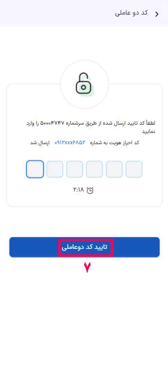 7- کد تایید ارسال شده را وارد کرده و تایید کنید.