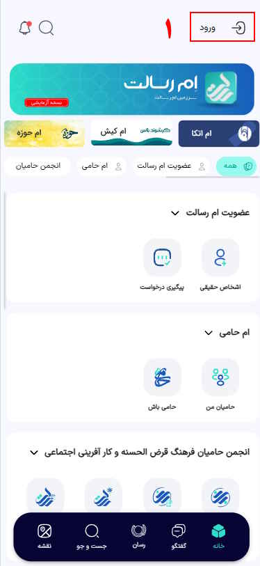 4- گزینه ورود به ام رسالت را انتخاب نمایید.