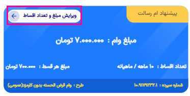 اگر نیاز به ویرایش مبلغ و تعداد اقساط را دارید گزینه ویرایش را انتخاب کنید .