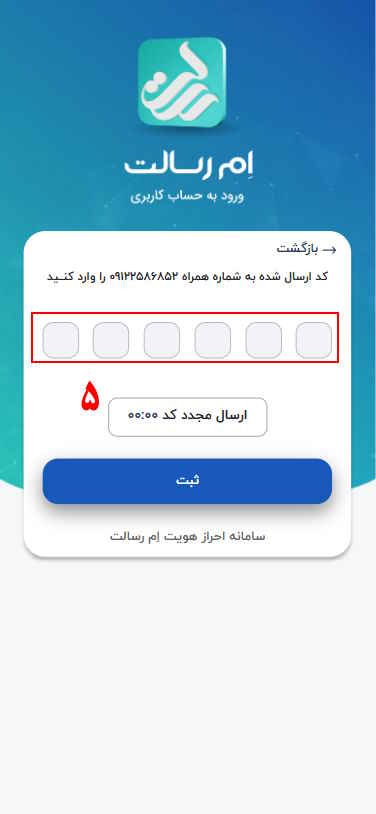 5- کد شش رقمی پیامک شده را وارد نموده و سپس، گزینه ثبت را کلیک نمایید.