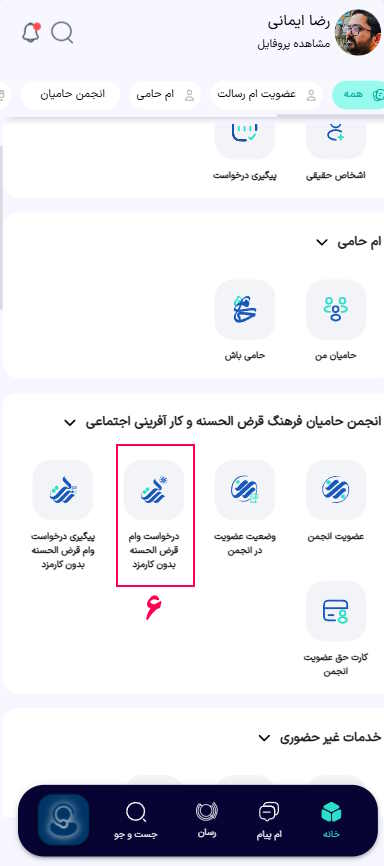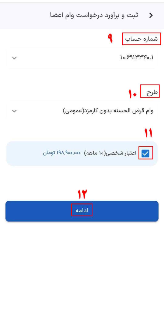 6-گزینه درخواست وام قرضالحسنه بدون کارمزد را انخاب کنید.
