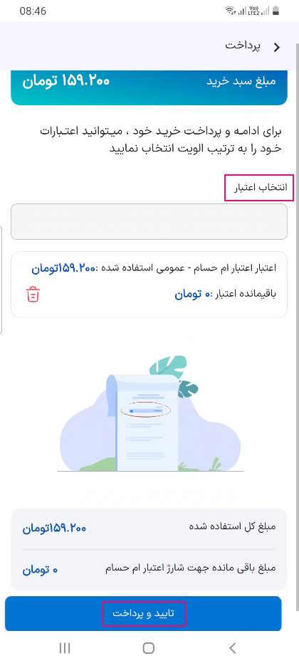 اگر ام حسام شما شارژ داشته باشد با انتخاب اعتبار پرداخت انجام میشود و اگر شارژ ام حسام نداشته باشید با انتخاب گزینه شارژ اقدام به شارژ ام حسام کرده و سپس پرداخت را انجام دهید.